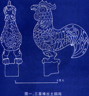 公鸡使人刮目相看的理由,无疑是它的报时功能。这在没有钟表的古代,具有非常重要的实用意义。三星雄人塑造了蜀鸡形象,并且安放在神庙里某一器物上,除了报时这一点以外,恐怕还有纪念此处是它们故乡的想法。