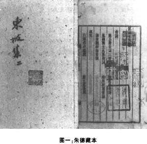 这套《三苏全集》封面题签不存,每集的名称都是用毛笔重新书写上的。封面的正中央有“泸州阴懋德仑园父藏书”朱印一枚。朱德收藏时缺了《嘉祜集》第一册和《东坡集》第七册,阴懋德将它们全部抄补齐全了。除补抄两册外,每册的第一页都钤有硕大的“德字玉阶”和“仪陇朱氏藏书”印记,还钤有“泸州阴懋德仑园父藏书”和“私立桐阴中学图书室”印,另有1963年三苏纪念馆改为三苏文管所后加盖的“眉山三苏文管所藏”印章。