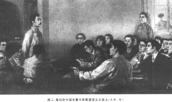 1927年“四一二”血腥大屠杀,使鲁迅从震惊中醒悟。他带着初期的唯物论、阶级论和尚未完全消退的进化论,步入中国左翼文学阵营。步入之前,他遭遇到太阳社、后期创造社关于提倡革命文学的大批判;步入后(指加入“左联”,成为盟主后),他被迫“横站着”进行创作和斗争;最后为了“左翼作家联盟”的存废、左翼文学的发展及对国防文学的看法再次遭到大批判,即周扬、夏衍、田汉等人对他的批判。阳翰笙一贯尊重鲁迅,从未写过专文批鲁迅;但因与上面三位一起先后任过“左联”党团书记、“文总”书记,而被鲁迅看成是文运领导,是“奴隶总管”、是“元帅”(鲁迅主要针对周扬等说的)而一并加以嘲讽。阳翰笙显然是随同受过了。其实,他为化解太阳社、后期创造社与鲁迅的矛盾至而联合起来成立“左联”,曾起到积极作用。1927年底先后成立的太阳社、创造社成员来自方方面面:有从日本回国,受过苏共、日共文学思潮影响的激进小资产阶级知识分子(冯乃超、成仿吾、李初梨等);有从上海地上爬起来,擦干身上血迹准备再战的中国共产党的青年党员(如阿英、胡也频、蒋光慈、夏衍等);有从南昌起义战场转移到上海的党内知识分子(阳翰笙、李一氓等)。他们会聚一起,闻着上海的血腥味,义愤填膺,在李立三(以后有王明)左倾盲动路线的引领下,急忙上阵,倡导“革命文学”,把文学当成机关枪、迫击炮、传声筒。甚至连郭沫若也放弃了与鲁迅“联合战斗”的计划,按何大白说法是“当革命文学的旗帜一揭起来,鲁迅却成了我们的敌人”(《文坛的五月》)。郭沫若、成仿吾、冯乃超、李初梨等认为要立革命文学,首先就是要大破,破权威偶像,破旧文学。他们把鲁迅当成了中国小资产阶级“最消极最无为的方面……是消极的乃至反动的”,批鲁迅代表的“倾向”。他们唯我独“革”,拉山头,搞宗派,头脑发热,好走极端,拿鲁迅祭旗,把以鲁迅为首的五四新文学著名作家茅盾、叶圣陶等也一杆子扫倒。被郭沫若称赞为当时文坛“黑旋风”的成仿吾以“浅薄”、“庸俗”字眼评价鲁迅小说,挖苦讽刺说:“这位胡子先生倒是我们中国的堂吉诃德——堂鲁迅”,说鲁迅“害了神经错乱与夸大妄想诸症,不仅见了风车要疑为神鬼,而且同时自己跌坐在虚构的神殿之上……”面对来势汹汹的大批判,鲁迅(图一)头脑清醒,冷静对待。他深知自己没把文学与政治等同,这就惹恼了革命派。鲁迅反击时先指出革命文学提法的“含混”,然后予以讽刺、挖苦、揶揄,但其观点是正确的。且看他在《上海文艺之一瞥》中总结说:“尤其是成仿吾先生,将革命使一般人理解为非常可怕的事,摆着一种极左倾的凶恶的面貌,好像是革命一到,一切非革命者都得死,令人只抱着恐怖。其实革命是并非教人死而是教人活的。”这场论争使鲁迅学习了马列主义。但鲁迅没有想到,时隔30年后,别人却用他的话作鞭子抽人。比如在“文革”中,作为山东大学校长的成仿吾,尽管参加过二万五千里长征,却仍被当做“反鲁迅的反动学术权威、反革命修正主义分子”被揪了出来,吃尽了苦头。(这当中,毛泽东在1957年对他的评价也起了作用。)鲁迅当年称成仿吾为“流氓才子”,此语在“文革”中作为大字报标题满天飞,以致1979年成仿吾平反复出后,还耿耿于怀,写诗道:“可怜酒鬼多仙去,‘才子流氓’今独存。”
