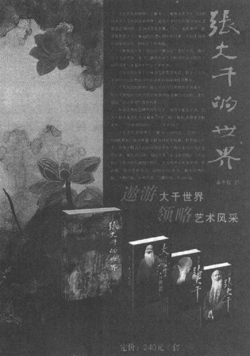 汪毅先生著三卷本《张大千的世界》——《聚焦张大千》、《回眸张大千》、《大风堂的世界》已由四川美术出版社于2008年2月出版,计有50余万字,900幅照片。