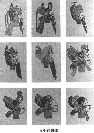 接下来,我们要看看基希和普实克在北平看的皮影戏属于哪类影系?他们两人看到的皮影班都只有四个人:一个表演皮影戏的艺人,三个乐师(一人拉胡琴、一人弹月琴、一人打锣)。影偶约有六七英寸高(约合0?郾46市尺至0?郾53市尺),用加工得透明的驴皮做成。两人所见的影幕略有不同。基希所见影班用纸幕:“那天晚上的第二个戏里,一座竹林烧燃起来。火势很大——也许太大了,用做投影的那张纸做的银幕(我们说它是银幕,是受了电影的影响),着了火。但戏剧没有间断,演唱没有停止,这傀儡戏的技师立即用一块纸糊好了那个洞。”普实克所见影班用的是白色幕布。灯光,基希所见为一盏油灯;普实克只说“幕后有一盏灯,把透明的彩色人物的影像投射在幕布上,影像突出醒目,色彩对比鲜明。”可能也是油灯!艺人的演技都很高明,一人能同时操纵四五个影偶,动作灵巧,变化莫测,而且还代表剧中所有人物说话、唱歌和朗诵;只有在群众场面,三位乐师才帮他呐喊。