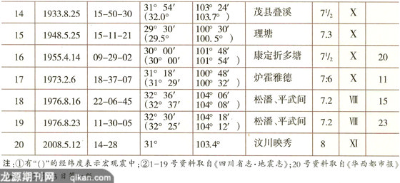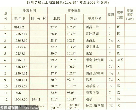 四川7级以上地震目录(公元814年至2008年5月)