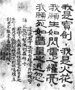 石评梅接到信和蘸血的珍贵礼物后,百感交集。自分别之后,她无时不在想念高君宇,于是作了一首《留恋》的小诗:“问燕子离开旧巢,含泪飞向谁家?榻上遗留下泪痕,案上留着药馨,风宵月夜,少了个瘦影……”又作《素心》一文,抒发了她的感情:“但是我看到信时,觉得他可怜得更厉害,从此后他真的孤身只影流落天涯,连个礼教上应该敬爱的人都没有了。我眼睁睁看着他要朦胧中走入死湖,我不伤心。为了我忠诚的朋友。”她深深地感到了高君宇的一片真情。这一次,她没有像退还红叶那样拒绝这枚象牙戒指,觉得高君宇就在自己的身旁,精神上得到了莫大的安慰。