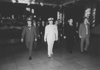 北京站宣布全面禁烟之后,有不少新闻媒体来到北京站进行采访,其中不乏外国新闻媒体。日本东京都电视台记者木协森先生来到北京站采访禁烟;下面是他与一位解放军战士的对话: