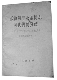 12月15日,《人民日报》发表社论《全世界无产者联合起来,反对我们的共同敌人》,这是中共回答苏共、意共等攻击的第一篇答辩文章,反驳了苏共、意共等党在中印边界冲突、古巴导弹危机及“纸老虎”论等方面的指责。12月29日,邓小平又把起草好的《人民日报》社论稿《陶里亚蒂同志同我们的分歧》送毛泽东审定,并在附信中说:“这篇文章比上一篇困难得多。经过多次修改,搞成这个样子。今天下午,将在少奇同志处讨论定稿。少奇同志意见,以在年底(卅一日)以前发表较好。请你看看,是否能用。最好在明(卅)日下午前给予指示。文章题目原想用‘驳陶里亚蒂’。因‘驳’字在外文中有‘反对’的意思,故未采用。”收到社论稿,毛泽东极其重视,连夜看完,30日凌晨2时写批语给邓小平:“文章已看过,写得很好,题目也是适当的。可以于今日下午广播,明日见报。”