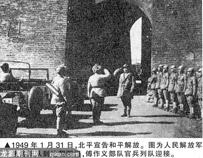 1949年1月31日,傅作义在《和平解放解决北平问题协议》上签署了历史性的一笔,古都北平宣告和平解放。同年2月22日,傅作义随同上海人民和平代表团前往中共中央驻地西柏坡拜见中共中央领导人,时间虽短短几天,但他对毛泽东、周恩来等人的豁达大度、肝胆相照十分敬佩。返回北平后,傅作义精神振奋,心情愉快。李克农曾风趣地说:“傅作义前后判若两人。”