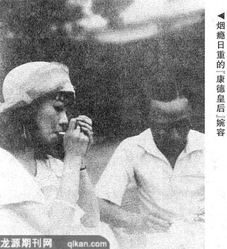 溥仪或许自知有对不住婉容的地方,遂由着她的性儿去抽,还派了一名叫赵荣升的太监专门服侍皇后吸烟。后来赵也写回忆文章,说婉容每顿饭后吸8个烟泡,每次要伺候20多分钟。谈到烧烟的细节时他说:“伺候烧烟要跪在地上,皇后左边吸4口,在她倒过身子的时候,你得把烟具随着捧过去再服侍她在右边吸4口。当然服侍长了,人也就成机器,节奏不差,但是在最初,也紧张得够人受的。”