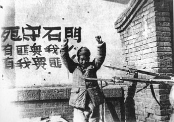 石家庄内外近百万人民,张灯结彩,欢庆胜利,晋察冀军民沉浸在欢乐的海洋里。