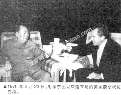 1976年元旦前夜,毛泽东会见两位美国前总统的后代——朱莉·尼克松和戴维·艾森豪威尔,与他们进行寓意深刻的“跨午夜”谈话。他对朱莉说:“欢迎你父亲再到中国来,我会等着他的。”2月6日,新华社播发新闻公告,正式邀请尼克松在中美《联合公报》发表4周年之际再次访华。2月23日,毛泽东再次会见尼克松,尼克松感到惊讶的是,这样一位风烛残年的老人,竟能以坚强的毅力,与他进行了长达100分钟的思维清晰而又睿智的谈话。