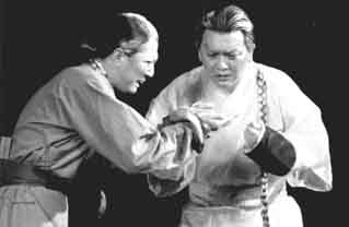 问:在这部戏中,你们完全没理会历史学家的说法,你们甚至没去管所谓的历史事实,而是在舞台上尽情地展开了你们的想象。不管这个戏有多少不足,有多少缺陷,它让人想起莎士比亚、契诃夫所从事的那种艺术,而不是让人觉得你们是历史系学生。夸张一点说,通过《生死场》,也通过你们这个戏,中国的戏剧家们好像终于明白自己在舞台上该干什么了。