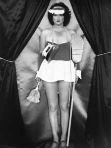 裘迪·戴特(Judy Dater)就是一个成功运用化装自拍摄影的手法来表现正好遭遇西方女性意识发生重大变化的历史时期中的女性心理变化的美国女摄影家。自己也是中产阶级一员的戴特敏感地意识到西方家庭社会中的女性角色与地位问题不仅是社会科学需要认真探讨的问题,它同样也值得摄影家以影像方式加以深入探讨。而化装自拍摄影这种手法则成为她在选择表现样式时的首选。