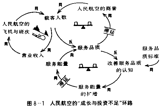 有许多理论曾经被提出来解释人民航空的成长与崩溃。由于采用格外尊重人性的“柔性”管理方式,布尔与这家航空公司广受各界瞩目。讲究实际的企业分析家觉得人民航空的没落,证实了“在商言商”的铁律。他们说,崇高的理念和尊重个人的民主管理方式是和利润相抵触的。有些人则归因于布尔与他的管理团体策略的错误,特别是在1985年购买总部在丹佛市的边境航空公司,带进了4000名员工之后,这些员工并未认同人民航空的价值观和经营策略。 有几位人民航空的高级主管,包括布尔在内,则由不同的角度来解释这件事。1984年,一方面也是为了因应诸如人民航空这类低价位空运业务的成功,美国航空(American Airlines)引用了一套新的订位电脑系统,带领航空业的订位系统进入一个新纪元。这套订位系统在登录商务旅客与一般旅客机位之余,还可以同时提供一种超低价位的机位,而使机舱达到满载的目标。这在航空业方面是一项重大的创新,使人民航空首度面对激烈的价格竞争。布尔和其他几位人民航空的高级主管认为,这才是将人民航空卷入危机的真正原因。 众说纷坛,到底什么才是人民航空溃败真正的原因呢?要了解到底问题出在哪里,必须梳理一组极端复杂的因素,才能找出头绪。 这些因素如表8—1所示,由其中的重要变数,可看出管理问题的“细节性复杂”非常庞杂,易于迷失在细节的“树”中,却看不见整个“林”。要能看清“动态性复杂”,系统思考的修炼才可以发挥最大的功用。借着系统基模的使用,我们能够学习如何把细节建构成为描绘各种力量运作状况的图形。 解开人民航空之谜 要解开像人民航空这样复杂故事的谜团,需要先找出塑造其营运状况、变化形态的各种力量,以及这些力量之间的互动关系(也就是我们所谓的结构)。对于一家企业所面临的复杂问题,这样的思考方式,比起只看事件所能提示的大为不同。 人民航空以创新性的产品概念及业界最低的成本,于1980年开始营运。(人民航空是1978年美国政府解除航空管制后,成立的第一家航空公司。)这家航空公司成功地结合了超低的价位和友善、诚恳,但却保留最基本的眼务(譬如三餐与行李托运都是另外按个人需要收费)。搭乘人民航空的东岸航线比搭乘巴士还便宜。这很快吸引了许多新顾客,布尔在1982年的第三季财务会议上宣布:“以飞机的班次而言,在纽约任何一个机场中,我们现在都是最大的空运公司。” 人民航空开业没多久就实行全面分股的制度,员工因公司的快速成长和令人振奋的目标,士气也高昂无比。正如1982年一位记者写道:“我不曾搭过能提供令人如此愉悦服务的飞机。另一点令我印象深刻的是,他们的员工全心投入工作的愉快态度。”就如布尔所说的:“在人民航空,服务态度与飞机的高度一般重要。” 但是早期的声誉与低价所带来的需求量,到了1982年中开始超过公司的服务能力。据1982年11月的统计,人民航空有三分之一的员工(约400名)是临时的。但是由于人民航空对于应征人员精挑细选,严谨的招募过程颇费时间,这使得人员的补充相当缓慢。而且在创新性的工作轮调与社团管理的概念下,服务人员的训练与培养成熟所需时间,远较传统的航空公司为长。 尽管有这些困难,消费者对于人民航空超低价位的需求,仍然惊人地继续成长。旅客乘坐的总英里数在1982年成长超过一倍,在1983年又成长一倍。到1983年年底,人民航空是业界获利最高的航空公司。它的股票交易价格从初创的每股8.1美元涨到22美元;这使人民航空的员工尽管工作过度,却愈来愈富有。布尔谆谆教诲大家辛勤工作,以及追求一个崇高愿景的价值:“人们在没有事情做的时候,反而会感到疲劳和压力的存在。建立员工共同努力方向的效果是非常惊人的。在有了共同方向之后,员工工作的成果绝佳。相反的,如果没有方向,成就不了多少事情。”1984年营业额又成长一倍,但是利润并未成比例上升。 同时,人民航空的顾客开始抱怨服务的品质下降:预订机票作业迟延、班机取消或超订机位等的情形愈来愈严重、空服人员变得不再那么亲切和有效率。起初顾客因为他们创业时的良好服务品质所留下之良好印象,仍继续光顾这家航空公司。但是在1984年与1985年间,顾客的数目开始下跌。成长变得完全靠价格来带动,人民航空的顾客也变得愈来愈重视价格,因为服务品质已不再是人民航空的最佳筹码了。最后人民航空的股价下跌,使士气与服务更进一步滑落。在该公司营业的最后一年,搭乘人民航空已经成为顾客一种不愉快的经验,连忠实的顾客也开始光顾其他航空公司。 虽然人民航空和前章所提神奇科技两家公司所经营的项目完全不同,前者的人员服务能量和服务品质逐渐恶化的问题,跟后者的生产能量不足和交货服务逐渐恶化的问题,有微妙的类似之处,以下将两家公司的属性及成长过程做一比较。 ●神奇科技公司是制造业;人民航空公司是服务业。 ●神奇科技公司最关键性的能量变数是生产能量;人民航空公司最关键性的能量变数则是由人员、经验、士气组成的“服务能量”。 ●神奇科技公司透过大量增加直销人员带动业绩;人民航空公司则以增加飞机和班次推动成长。 ●神奇科技公司的没落是由于逐渐延长的交货期与交货标准;人民航空公司的一蹶不振则是由于逐渐降低的顾客服务品质与服务标准。 以“