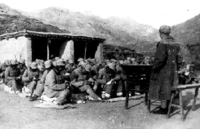 8月23日这天,毕业典礼。是在大李庄的枣林里,是日烈日当空,一排排的人坐在枣树底下,阳光的花斑洒在每个人的身上、脸上。各种昆虫在地上爬行,爬着爬着便爬到谁的腿上或背上。知了在树上毫无倦意地叫着。高空有鸟飞,有云游,村里有狗叫,有鸡鸣,亦有婴啼,还有谁家浇园的辘轳响,间或还有从远处飘来的断断续续的高亢的梆子腔。这样的毕业典礼,教育史上恐不多见。当年孔夫子杏坛讲学,风雨或相仿,但面貌却莫可比。